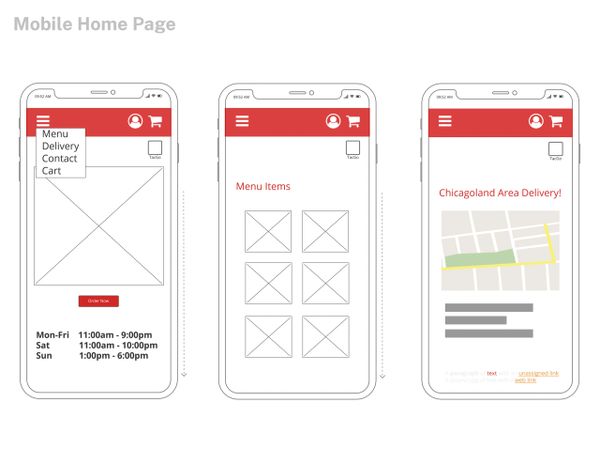 From the user research, I learned that there were some pain points.. A pain point issue was that the users wanted to see a picture menu more often a worded list at their first selection. In changing this would engage the users more during the ordering process. I also noticed that many users were confused on what area delivery was available to them and decided to add a Delivery Area screen for a better explanation. To also add to the design, I had incorporated a map on display for better understanding.